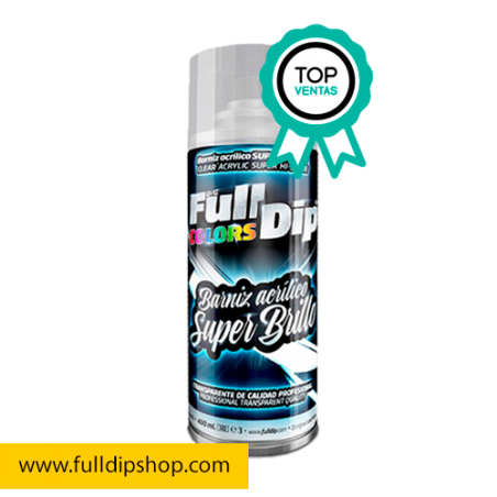 Vernis Acrylique Ultra Brillant FULL DIP spray 400ml est semi fléxible et s'utilise sur toutes les teintes Full Dip pour obtenir un aspect brillant et pour permet de prolonger la durée de vie de la peinture.